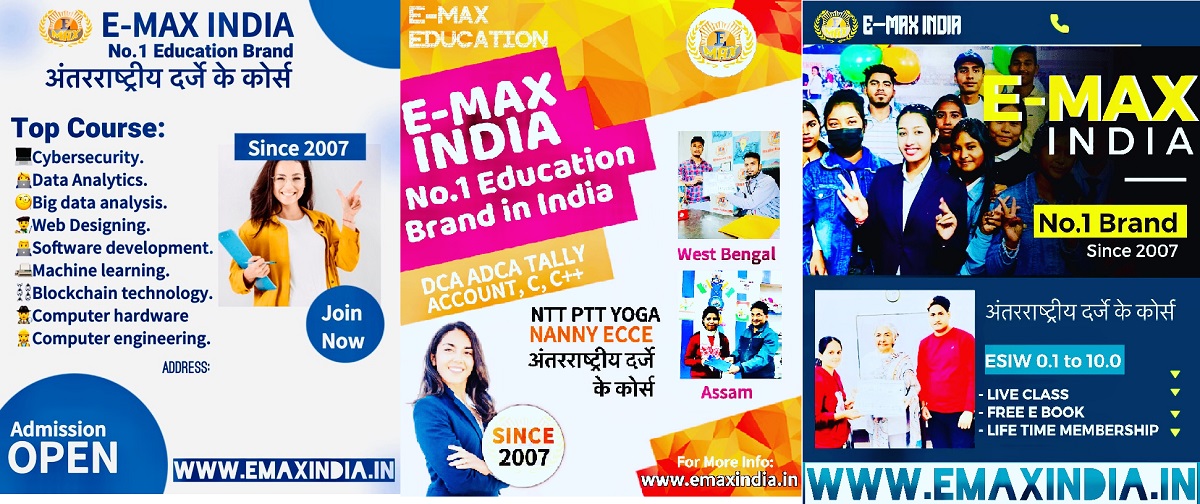 E-MAX Education is the No.1 Best Top Training Institution in Bharat, India’s Reliable No.1 Topmost Training Provider, Computer Education Vocational organization Center- E-MAX Education is the India Best Top No.1 Ranked Computer Training Center organization.